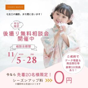 【七五三】まだ間に合う⁉️七五三ラストチャンス!後撮り平日限定無料相談会 〜先着20名に豪華プレゼント〜