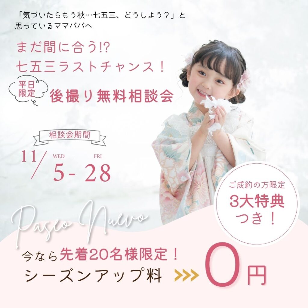 【七五三】まだ間に合う⁉️七五三ラストチャンス!後撮り平日限定無料相談会 〜先着20名に豪華プレゼント〜
