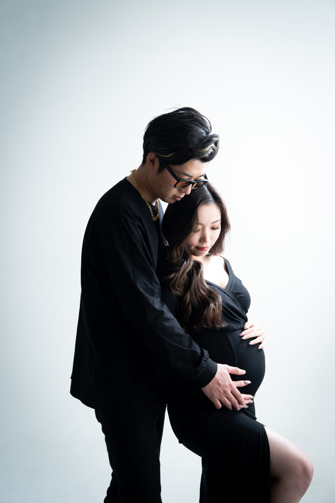 マタニティフォトと生まれてからの家族写真を同じポーズで残すビフォー&アフター撮影