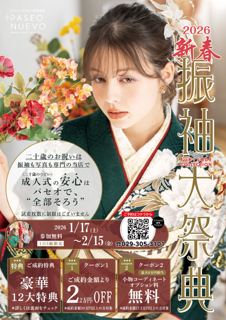 Instagram Line Facebook 二十歳のお祝いは、振袖も写真もパセオで!成人式の安心はパセオで ”全部そろう” 2026 振袖大祭典 高校2年生、3年生、大学1年生のお嬢様とそのご家族さまへ 「まだ先 […]