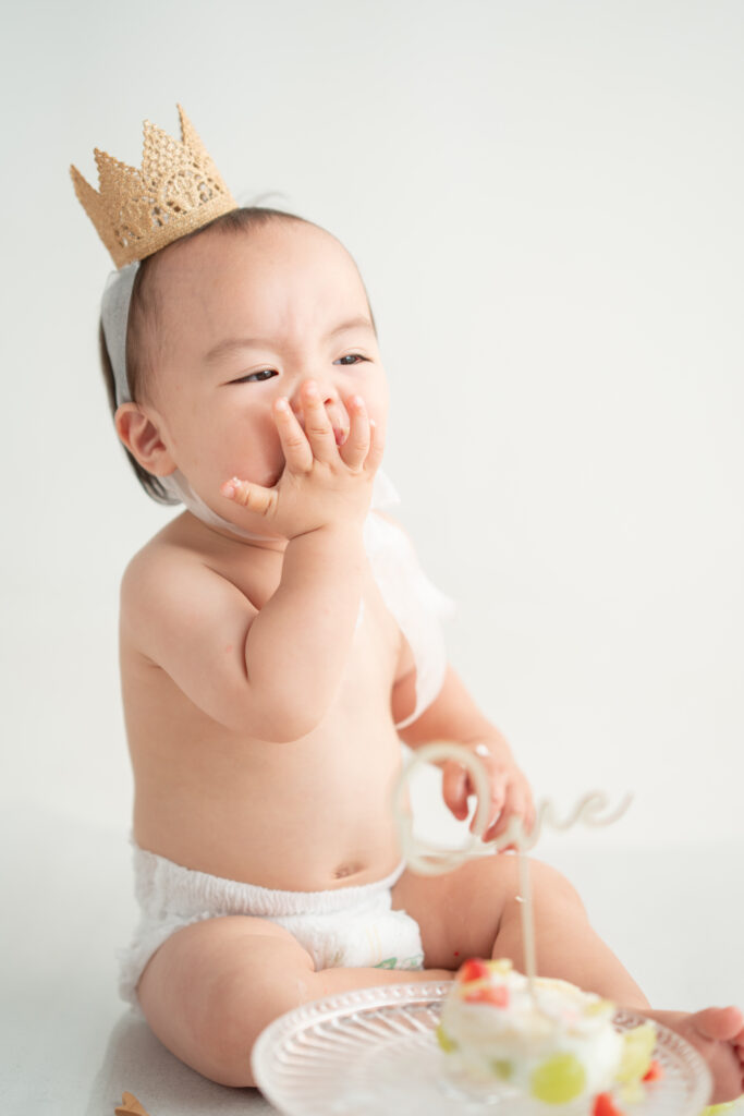 「自由にケーキを触って楽しむ姿を残したい」という想いから産まれ、赤ちゃんがケーキを手で触ったり壊したりする“ありのまま”を写真に残すのが特徴です。